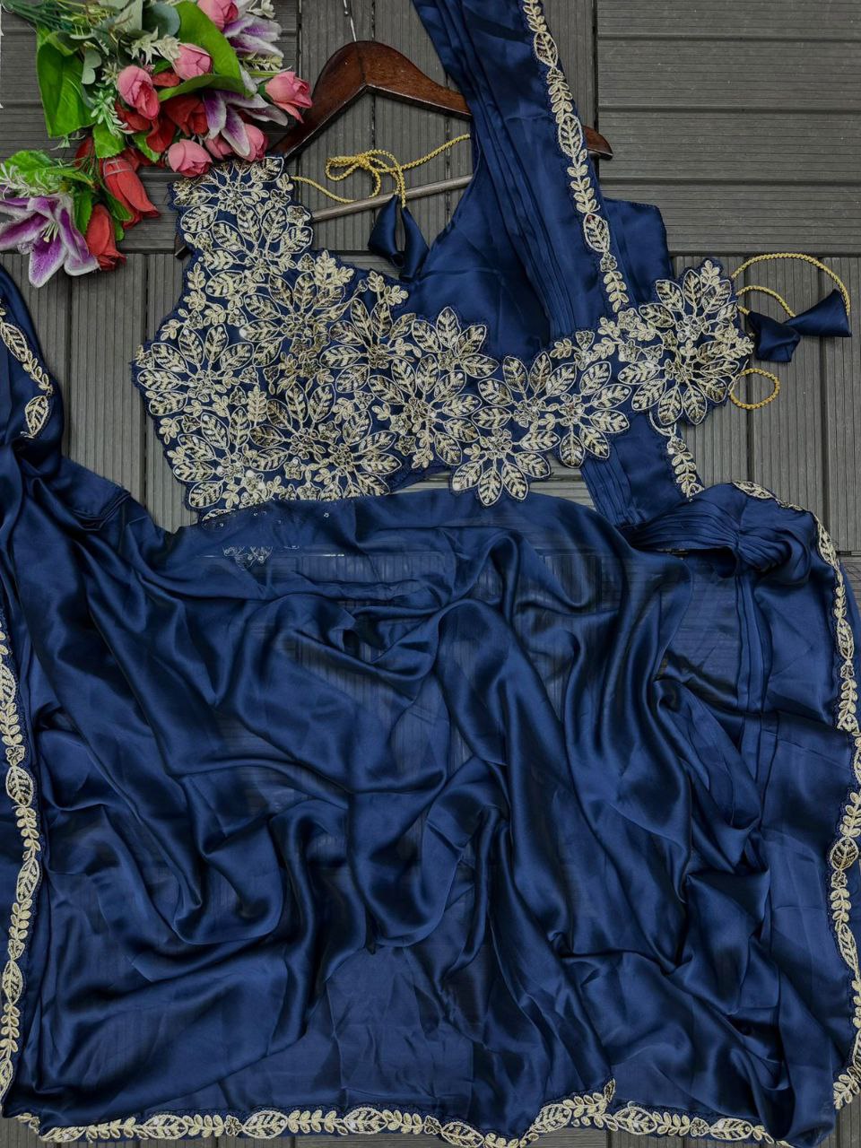 *New Super Trending Embroidery cording work ready to wear saree with Embroidery Blouse*