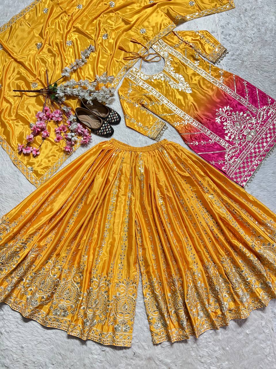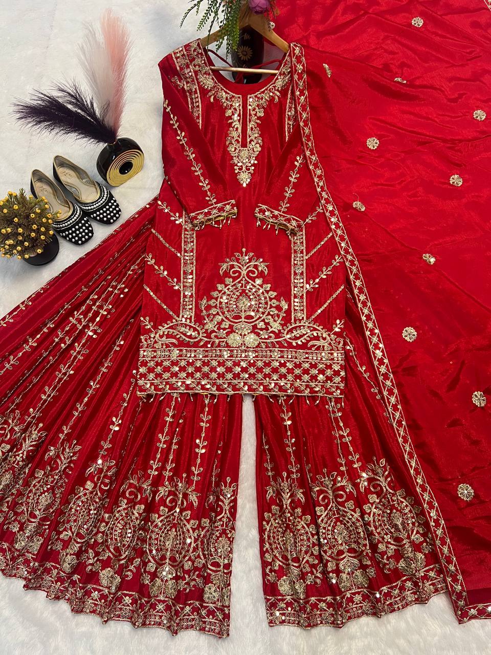 *Plazzo fabric* :Pure Heavy Chinnon Silk With Heavy Embroidery Coding Sequence Work *(FullyStitched)*