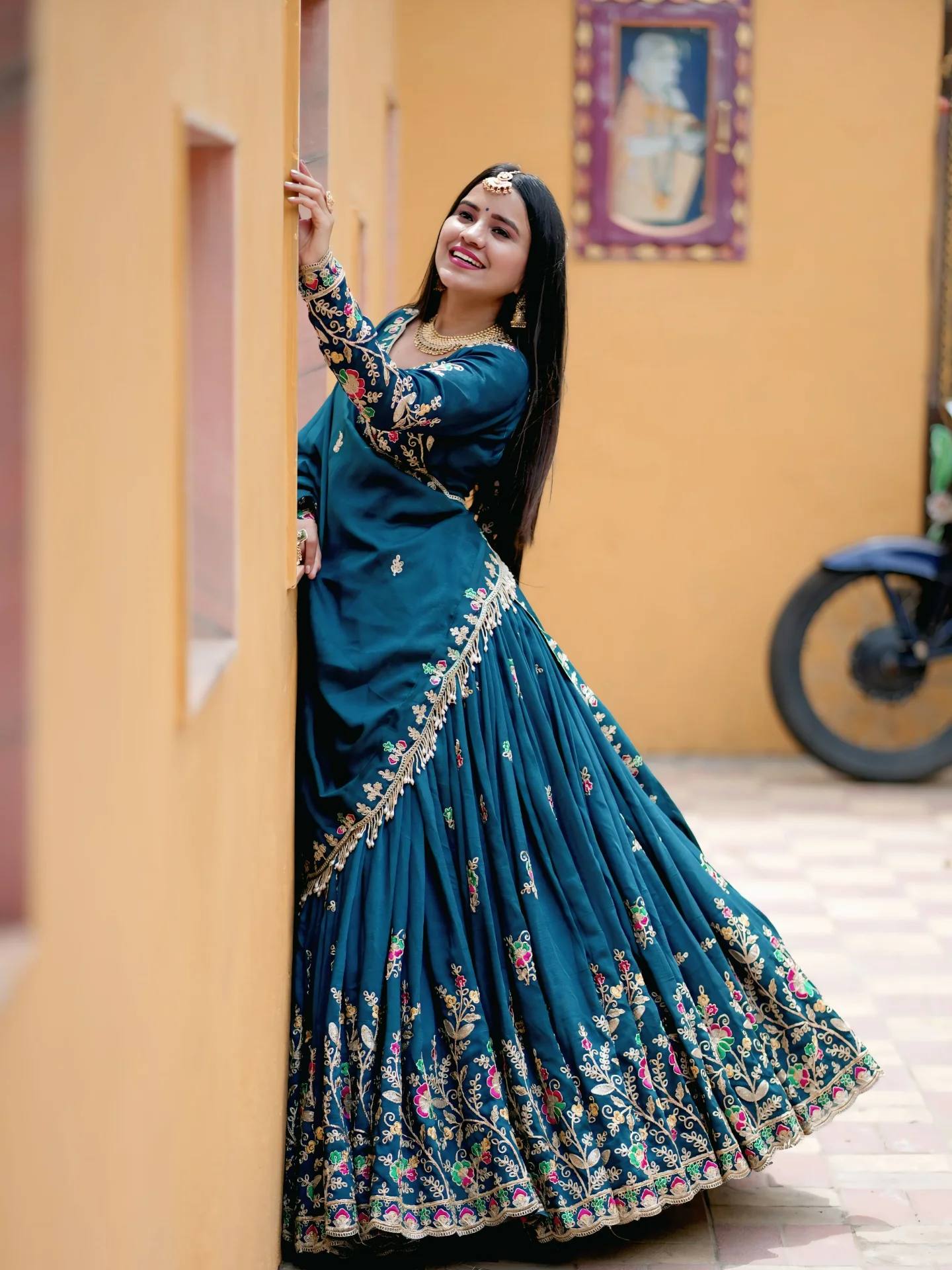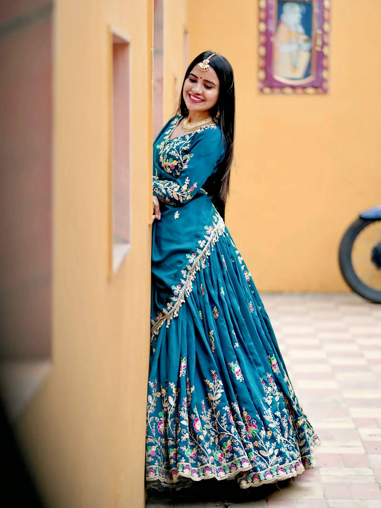 Lehenga *Fabric:-* Chinon *Inner:-* Micro Cotton *Work:-* Embroidery Coding Thread Work *Flair:-* 3.50 Meter *Size:-* 44