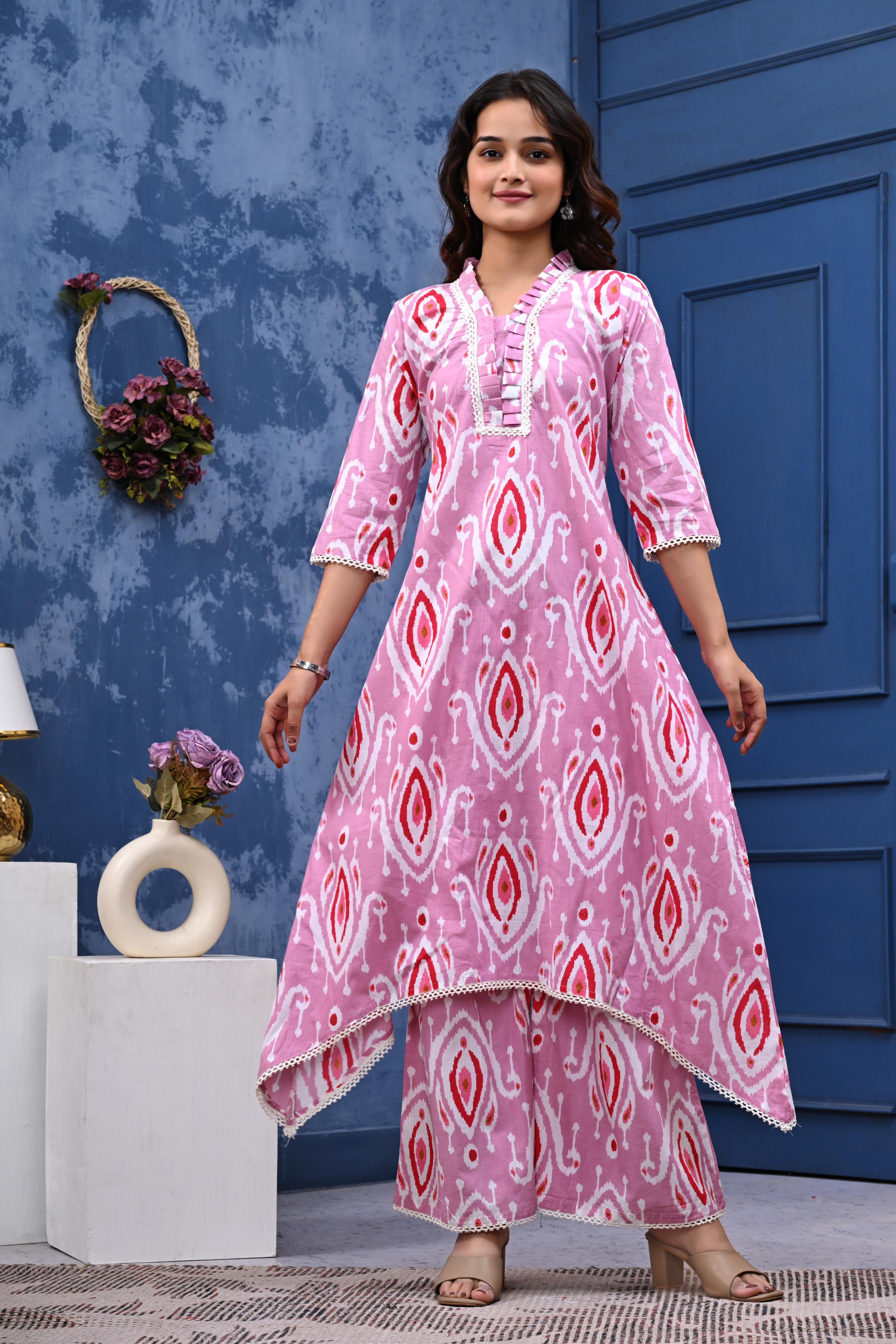 Our elegant designer printed work kurta with plazzo co-ord set pure cotton