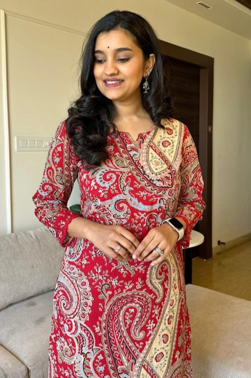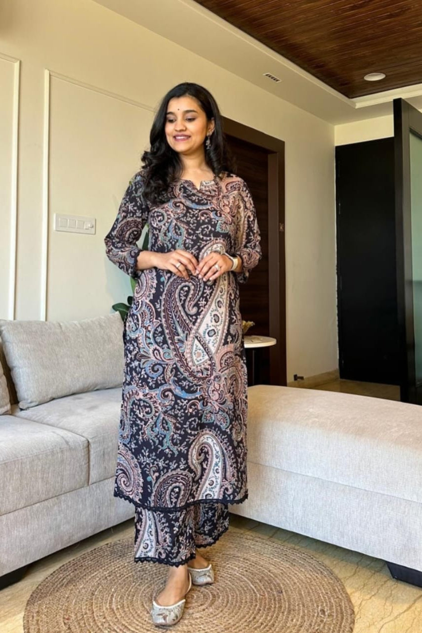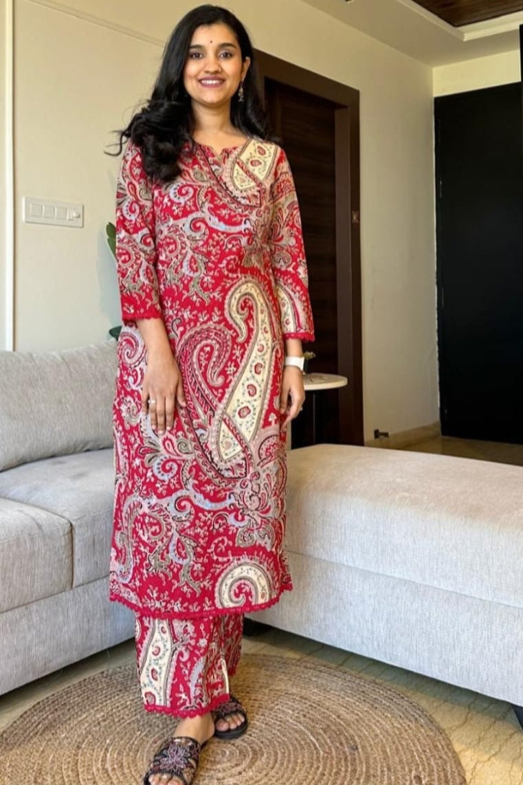 Our elegant designer printed work kurta with plazzo co-ord set pure cotton